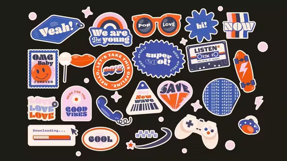 Retro Y2K Stickers Looped Animation - 49411175